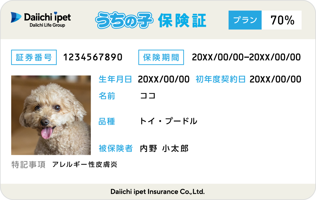保険証に使用するため、ペットの写真登録が必要です。